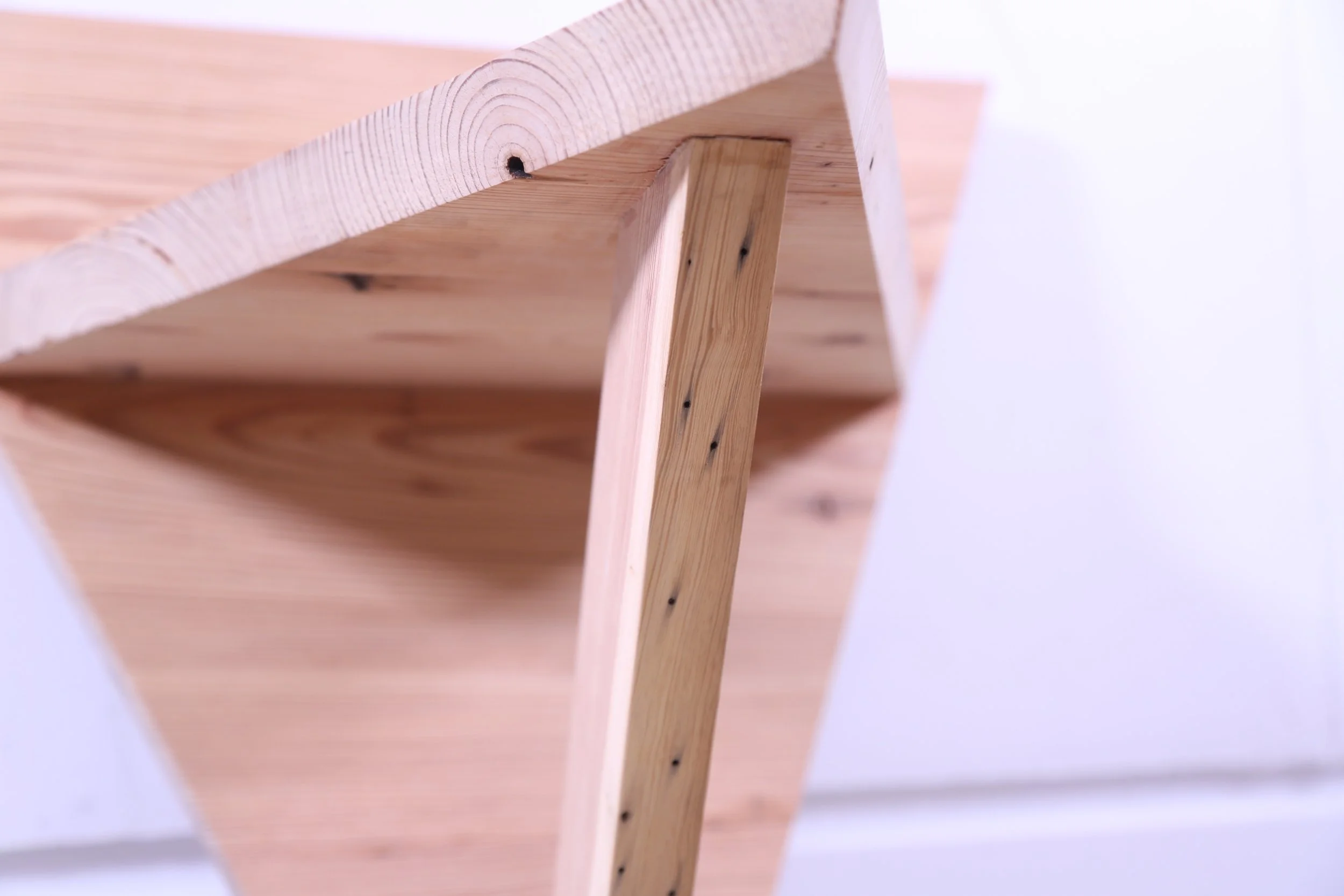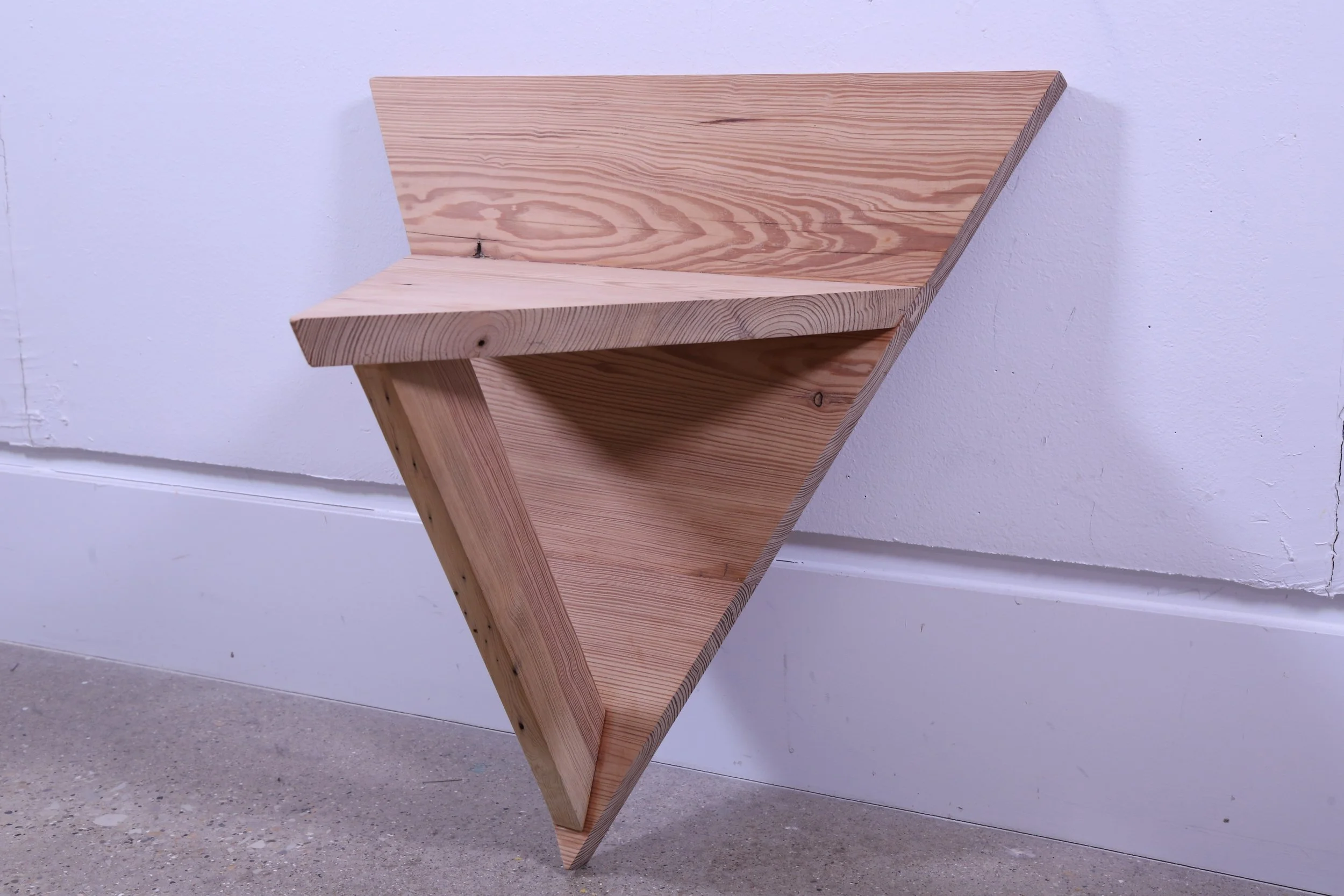is lumber that has been salvaged or repurposed in one way or another, often coming from vintage buildings or structures. The history of this tree becoming artificial lumber dates to the mid-late 19th century when the Midwest United States was going through a mass deforestation process due to the increase in consumption of wooden materials. Considerations towards sustainability, ecology, and working environment were lacking in the industrializing era, producing large acres of cutovers, or abandoned ghost landscapes of cutdown trees. This Douglas fir board came from an age when forests in Michigan and Wisconsin were decreasing by irresponsible human activity.